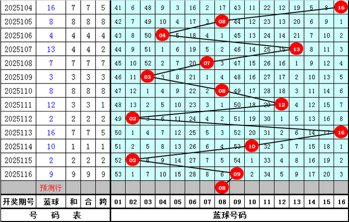 蓝球分析:上期蓝球奖号开出09,为大号,上周日蓝球奖号开出10,最近十周日蓝球号码大小比为6:4,大号蓝球较着较热,本周日蓝球肃穆小 号回补,保举蓝球号码02、03、04、05、08。
